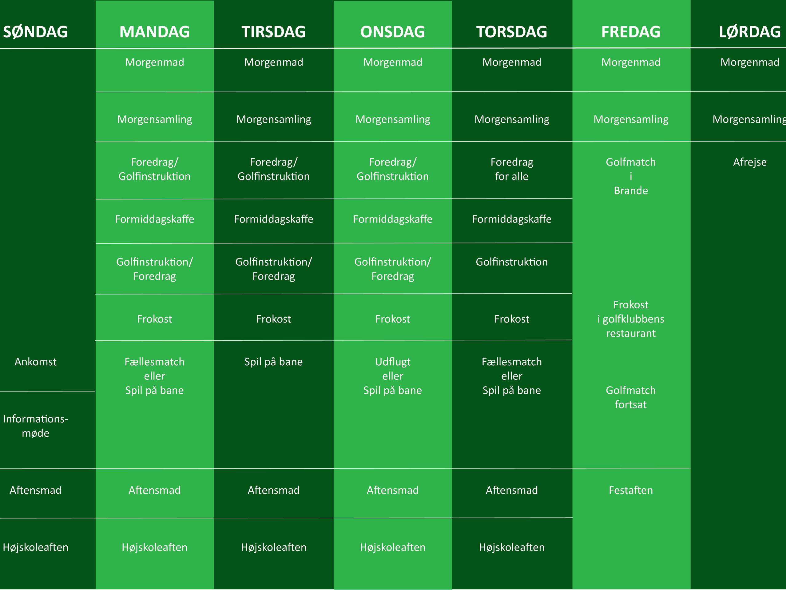 Ugeplan for Højskole & Golf